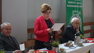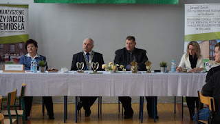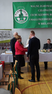 Na koniec swojego wystąpienia dodała, że Cech od 2013 roku prowadzi przy Zespole Szkół CRR Ośrodek Dokształcania i Doskonalenia Zawodowego CRRiMP w Bielawie, w którym przeprowadzane są kursy teoretycznej nauki zawodu dla pracowników młodocianych. Do tej pory nasi uczniowie oraz uczniowie okolicznych szkół na takie kursy wyjeżdżali m.in. do Świdnicy, a teraz dzięki prowadzonemu przez Cech ośrodkowi, kursy takie odbywają się na miejscu lub w Dzierżoniowie. Nadmieniła także, że w chwili obecnej prowadzone są kursy zawodowe w zawodzie mechanik pojazdów samochodowych i fryzjer dla klas I, II i III. Dzięki takiej ofercie edukacyjnej, rodzice naszych uczniów zaoszczędzą na dojazdach swoich dzieci, a okoliczne szkoły zawodowe na opłatach pracowników młodocianych za kurs.