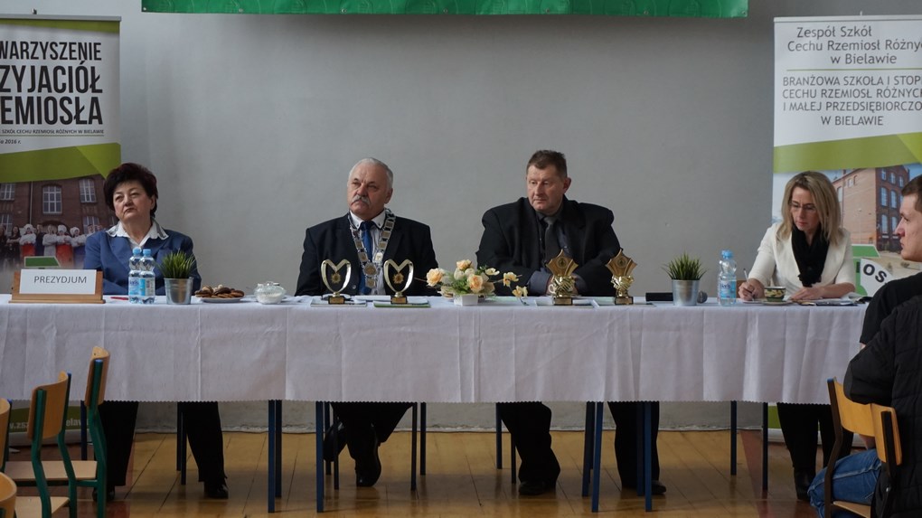 Na zebraniu rzemieślniczym oprócz podsumowania działalności Cechu i Zespołu Szkół za rok 2017, głos zabrał m.in. Burmistrz Miasta Bielawa Piotr Łyżwa, który w pierwszych słowach swojego wystąpienia dziękował za kontynuowanie tradycji rzemieślniczej, życzył wszystkim zebranym rzemieślnikom pomyślności w prowadzonych działalnościach i podziękował bielawskiej społeczności rzemieślniczej dobrej działalności na terenie Miasta Bielawa oraz podkreślił, że bardzo ważne jest organizowanie spotkań mających na celu pomoc bielawskim rzemieślnikom i przedsiębiorcom, ponieważ to oni tworzą i utrzymują nowe miejsca pracy. Prezes Izby Rzemieślniczej w Opolu Tadeusz Staruch w pierwszych swoich słowach przekazał serdeczne pozdrowienia od Zarządu Izby oraz złożył życzenia z okazji zbliżających się Świąt Wielkanocnych. Podkreślił również, że myślenie o polskim rzemiośle musi ulec zmianie i to zdanie, a zarazem duże wyzwanie dla rzemieślników, żeby robili wszystko, aby przyciągać do siebie uczniów, po to, by polskie rynki pracy miały solidnie wyszkolonych fachowców.