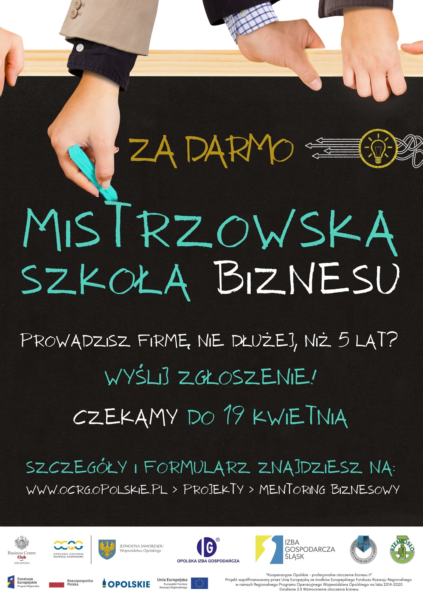 W imieniu przedstawicieli Opolskiej Loży BCC, Opolskiej Izby Gospodarczej, Izby Gospodarczej Śląsk, Izby Rzemieślniczej w Opolu, Marszałka Województwa Opolskiego – Andrzeja Buły oraz Dyrektora Opolskiego Centrum Rozwoju Gospodarki – Rolanda Wrzeciono, serdecznie zapraszamy do udziału w V edycji projektu pn. „Program Mentoringu Biznesowego Województwa Opolskiego”. Ośmiu znanych prezesów i dyrektorów firm podzieli się swoją wiedzą i doświadczeniem z młodymi przedsiębiorcami. Podopiecznymi mentorów, czyli mentee, mogą zostać osoby, która mają status młodego przedsiębiorcy, zarządzającego firmą mikro, małą lub średnią, zarejestrowaną na terenie województwa opolskiego, działającą na rynku nie dłużej niż 5 lat.